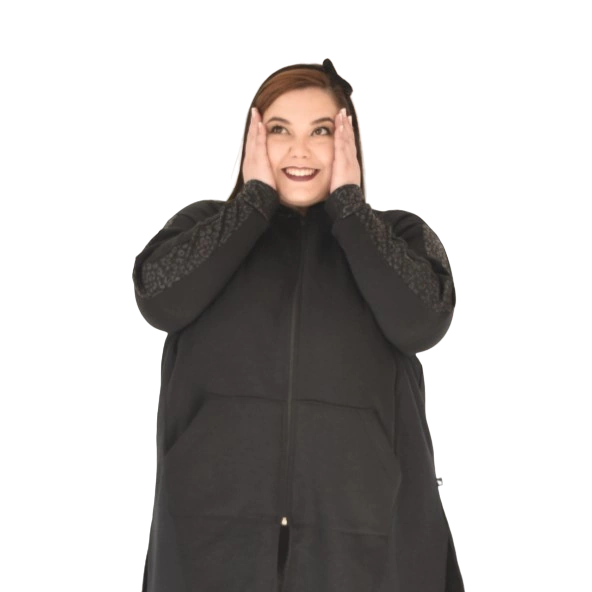 Campera Negra de Rustico de algodon, con cuello mao, bolsillo delateros, detalle de recorte en la manga, y tajos laterales. Super abrigada.