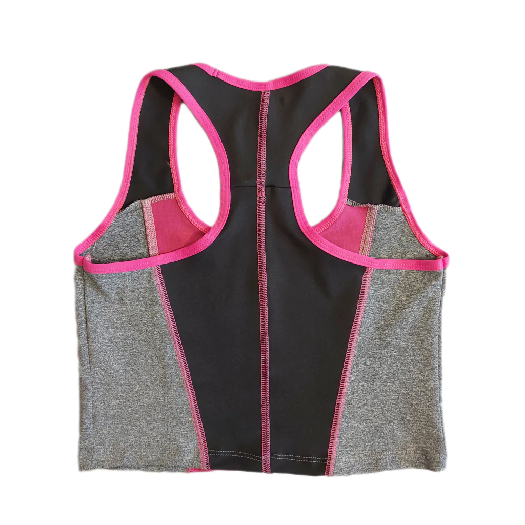 Top Deportivo, estilo musculosa, corte a la cintura, estilo Musculosa combinado, con costuras reforzadas.